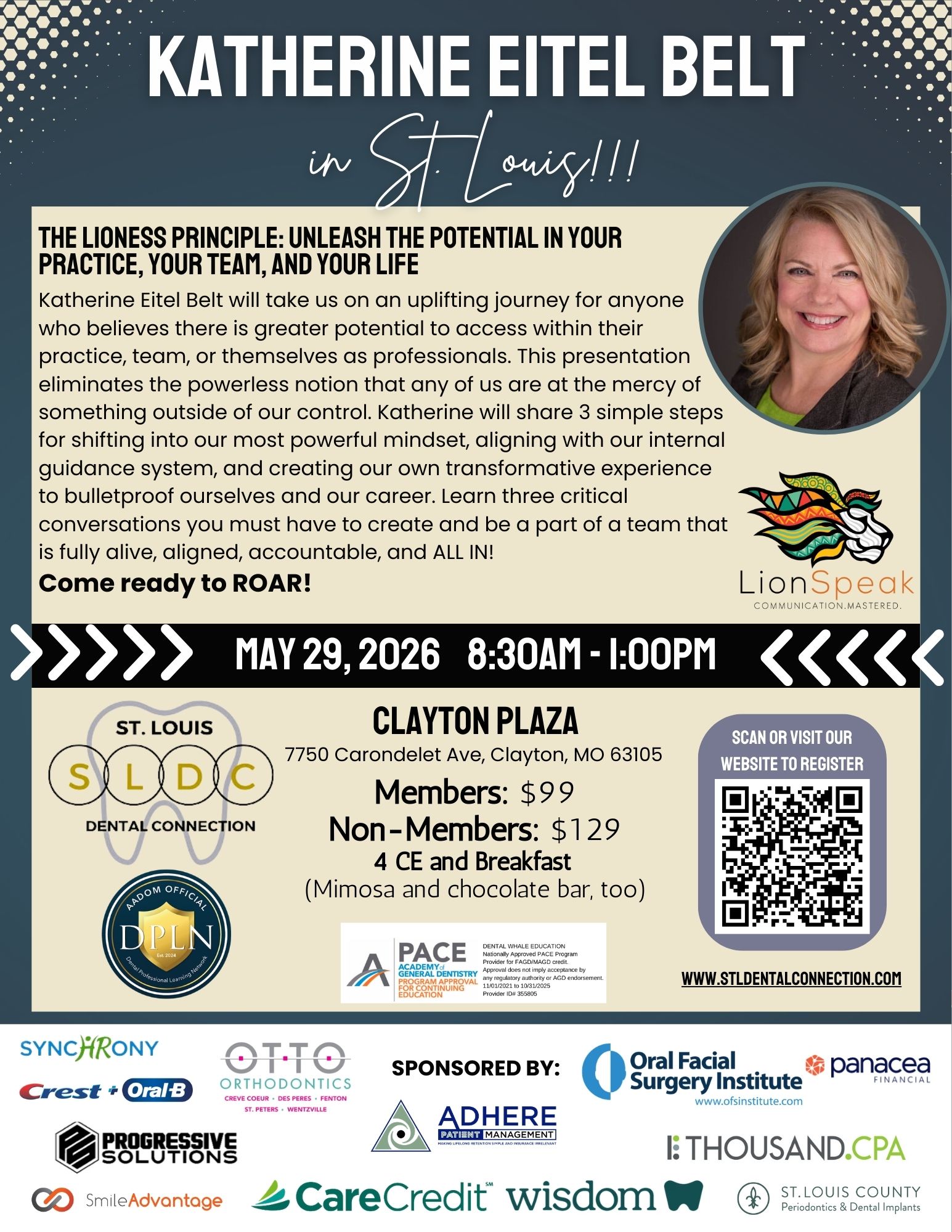 Join master trainer and award-winning speaker, Katherine Eitel Belt, as she takes us on an uplifting journey for anyone who believes there is greater potential to access within their practice, team, or themselves as professionals. This presentation eliminates the powerless notion that any of us are at the mercy of something outside of our control. Katherine will share 3 simple steps for shifting into our most powerful mindset, aligning with our internal guidance system, and creating our own transformative experience to bulletproof ourselves and our career. Learn three critical conversations you must have to create a team that is fully alive, aligned, accountable, and ALL IN on the vision and value set of your practice! You will not soon forget this impactful presentation and the transformation it can make possible. Come ready to ROAR!